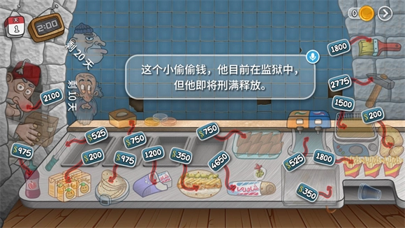 3、游戏第10天会解锁乞丐角色,完成订单后需要主动点击乞丐才能获得金币,否则他会直接免费获取;第20天会解锁小偷角色,小偷会偷走桌面上未及时收取的金币,多次点击小偷可将其驱赶,同时能拿回被偷走的金币。