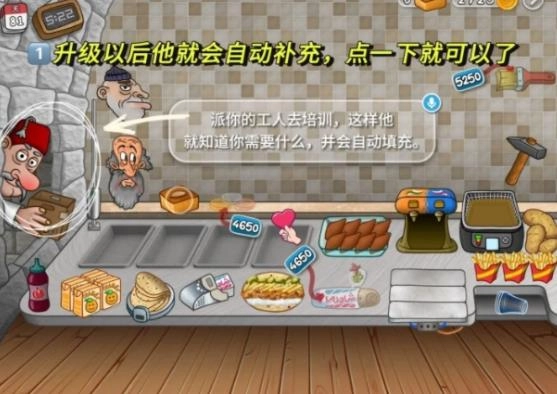 1、优先推荐升级能自动化的功能,比如自动切肉机、自动包装机、自动填充食材的大叔、自动削土豆这四种,能大幅减少你的工作量,并且能完成更多的订单。