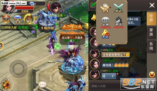 3、【热血战斗】家族大战、20人大乱斗、跨服对决等多种PVP玩法。