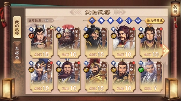 在武将设计方面,《策魂三国》同样体现出独特的历史严谨性。游戏结合每位武将的性格特质与历史属性,为他们量身打造了两个专属特技,以此凸显不同武将的独特设计与定位差异。三国群英向来以文韬武略各有所长著称,而《策魂三国》中则划分了霸王、军师、武将、儒将、谋士、侍郎六大职业类型;依据兵种差异,还设有盾兵、枪兵、骑兵、弓箭兵等丰富兵种设定,既能突出武将的鲜明特色,也让主公们拥有更多策略搭配的选择空间。