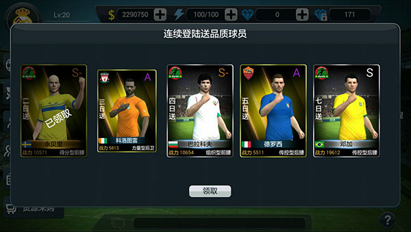 2、(通过连续登录可获得部分球员赠送,以此提升球队实力,帮助玩家更快速地进入游戏体验)