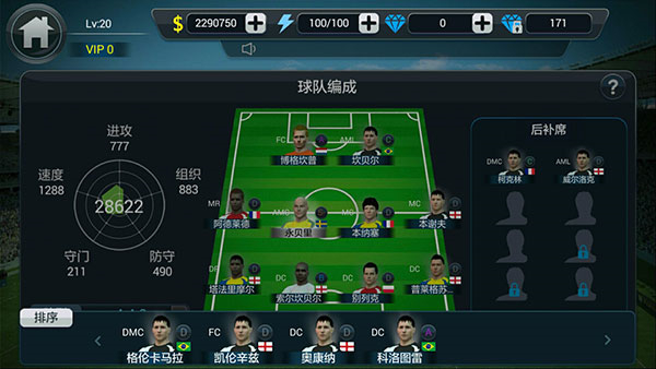 4、(先在球员-背包里使用登录赠送的球员,接着在球队布阵界面将这些球员替换上场,有了博格坎普和永贝里的加入,感觉球队实力提升了不少呢)