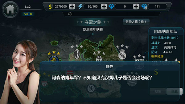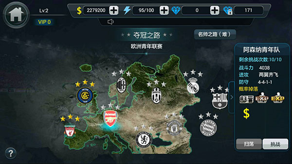 6、(布阵列好,就可以去挑战球队了,首先进入赛事挑战里的夺冠之路,各路豪强已严阵以待,小伙伴们是不是已经跃跃欲试了呢)