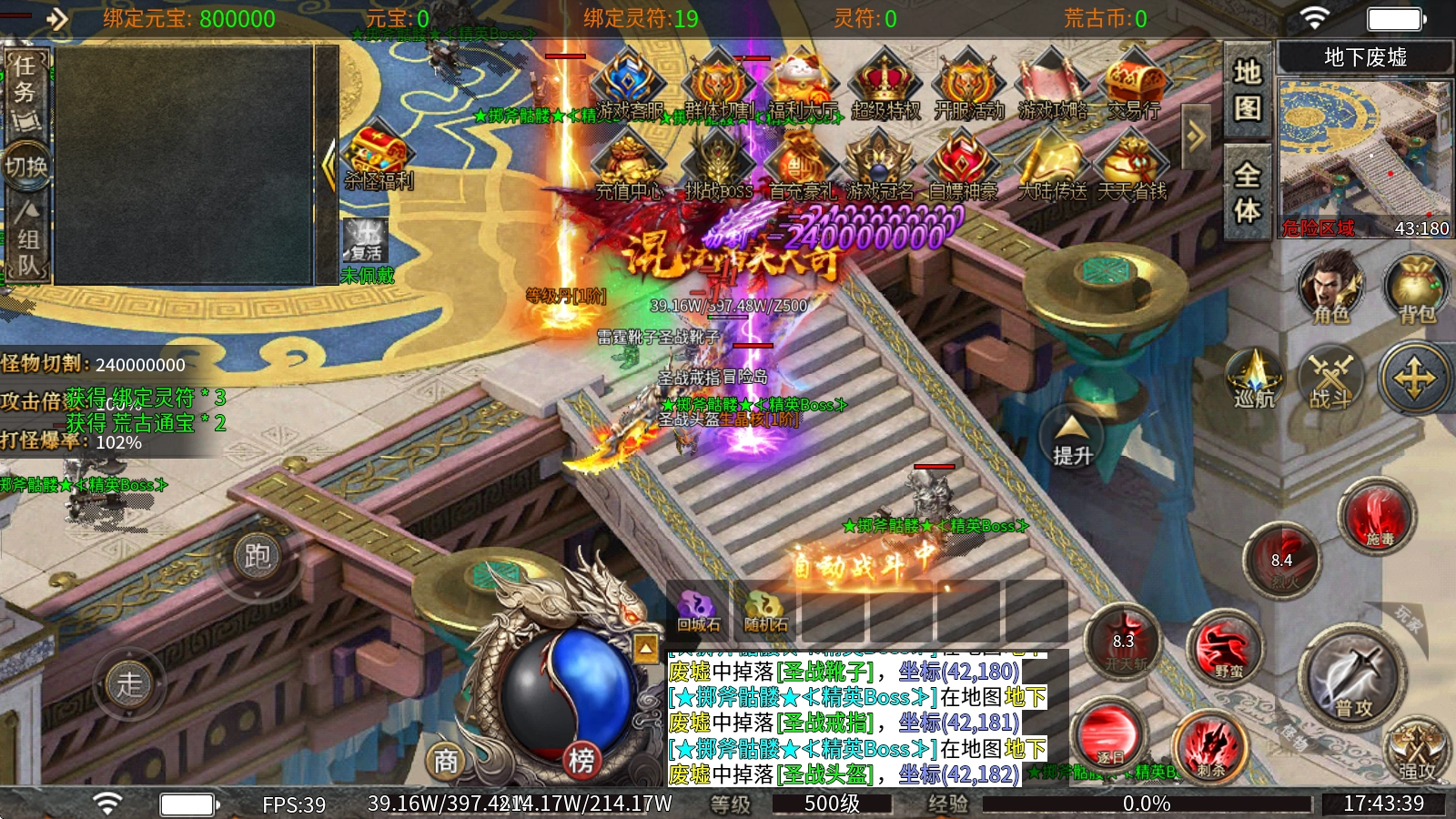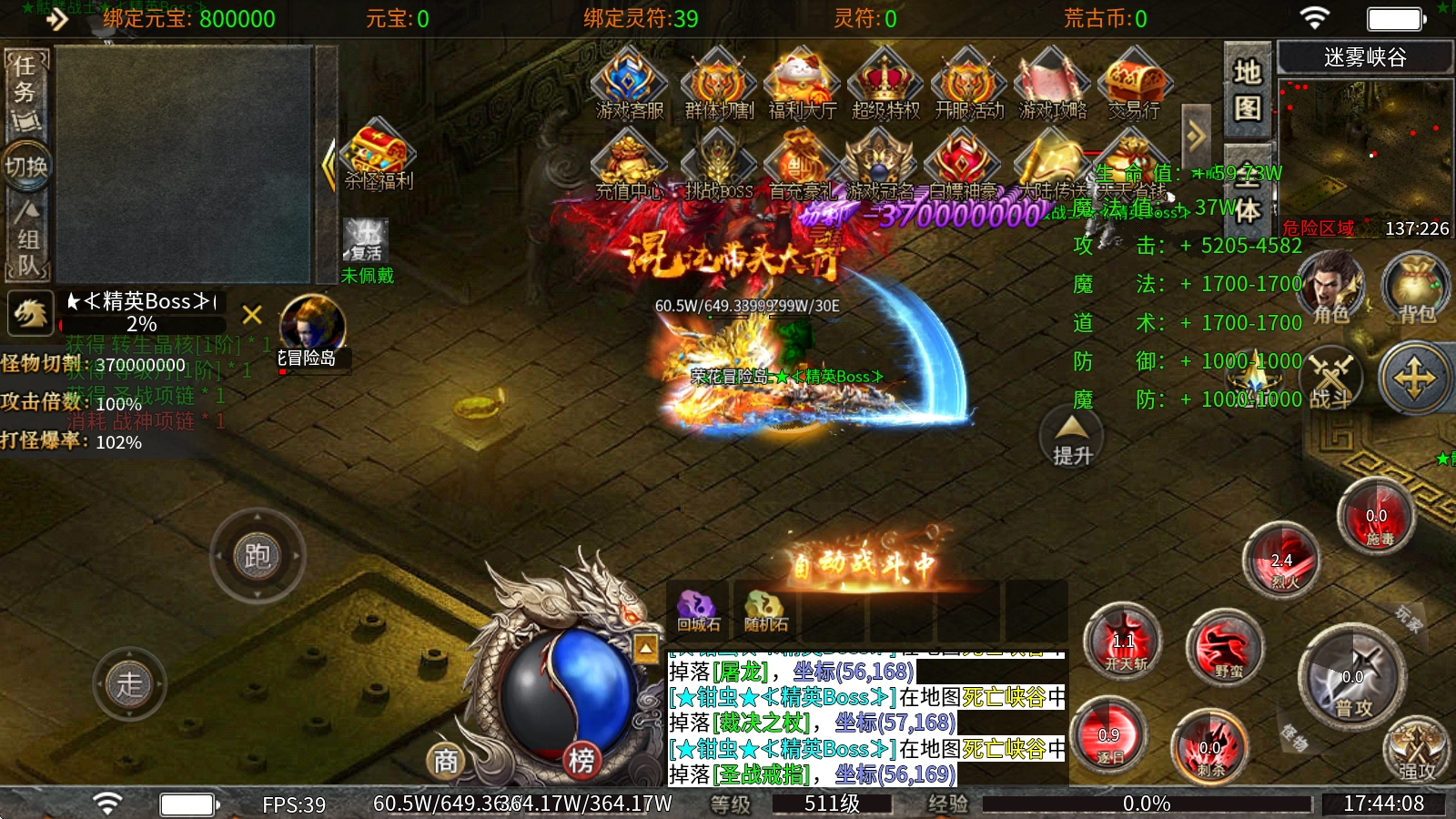 3、本服务器里所有的装备和材料都能通过打怪获取,就连神器也能掉落,要是运气好爆出一件,就能让你直接快速提升实力。