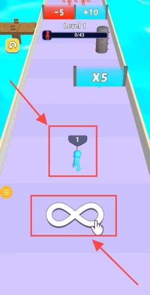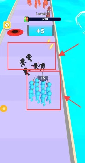 2、进入后,按住小人左右前后滑动,让小人数量增加。