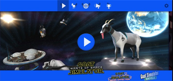 《模拟山羊太空废物》是《模拟山羊》系列的一部作品。这一作把场景搬到了宇宙之中,玩家能够操控机械羊、星战羊、异形羊等不同类型的山羊进行飞行和机甲战斗,在太空中尽情搞破坏,延续了系列前作的经典风格,有着丰富的破坏与冒险元素。玩家可以毫无顾忌地破坏宇宙里的星球、空间站等设施,还能和其他角色展开紧张刺激的战斗。