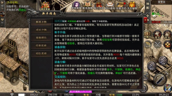 新手玩家可以在新手训练营通过击杀小怪快速提升等级,等级达到30级时就能领取一套新手装备。之后前往初级地图继续打怪升级,使用经验宝典能获得经验加成,而且击杀怪物还会掉落经验卷,使用后可获取大量经验。