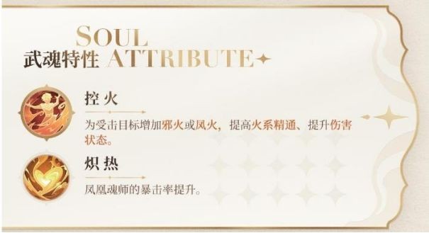 解除自身所受的非强制类控制效果,随后6秒内化身凤凰形态。在此魂技持续期间,将免疫所有控制效果,移动速度提升50%,但无法释放其他技能,且可主动解除变身状态。化身凤凰移动时,会在行进路径上留下持续1秒的凤凰火焰,该火焰路径每1秒会对范围内的敌方造成攻击力22%+1758的火焰伤害,并附加持续1秒的减速效果。