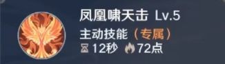 凤凰啸天击进行先手控制,释放凤凰流星雨和凤凰轰击进行持续输出,并且为敌方挂上风火,随后释放凤凰火环引爆风火状态,触发凤火焚天破的被动效果。