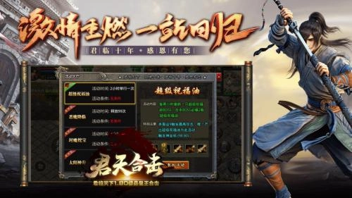 君天合击是一款相当经典的冒险传奇挑战类游戏,玩家在游戏里获得的奖励与自身实力紧密相连。游戏中会有不少经典副本任务供大家体验,人物造型设计十分独特,还会提供多套装备。要是你能顺利完成所有挑战任务,不仅能提升实力,还能获得更高级的装备。