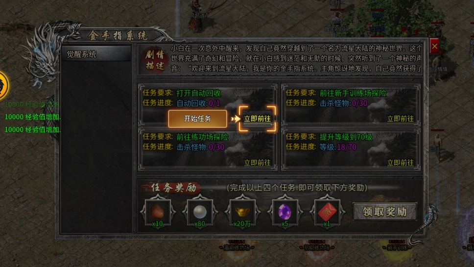1.创建角色后优先完成主线任务至30级,解锁日常活动。