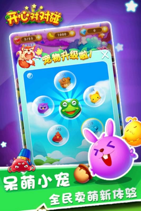 《开心对对碰》是一款经典又有趣的三消游戏,不仅创新了休闲玩法,还设置了海量关卡,背景风格以童话为基础。闯关过程中,游戏提供独特道具和超多神秘奖励,搭配各类趣味挑战,相信热爱休闲挑战的玩家会沉浸在这个全新世界,获得身临其境的极致体验。游戏完美融合三消与养成元素,画面神秘绚丽,关卡丰富有趣,玩家可搭配萌宠,体验让人爱不释手的宠物系统,在提升反应能力的同时轻松通关。