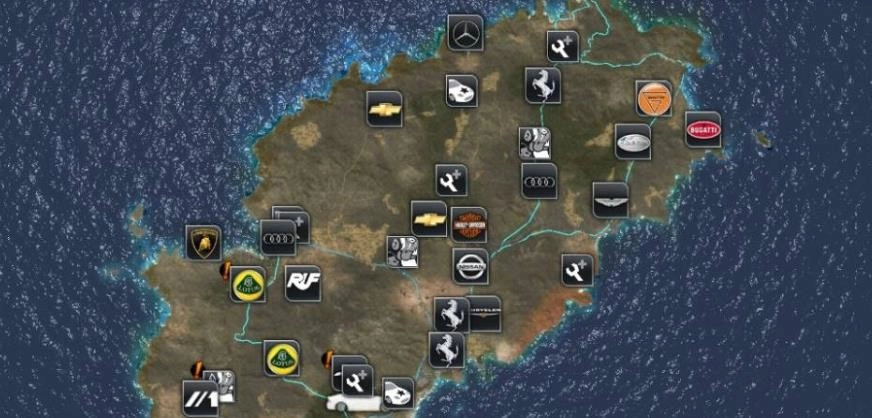 提供了当时赛车中最大的地图之一,包括伊比沙岛和瓦胡岛,总道路长度为2200公里。