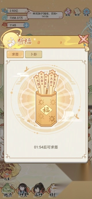 2、求签的随机性较强,唯一的目标是抽到能直接获得宝物的上上卦。
