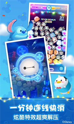 松松总动员是获得迪士尼授权的休闲益智类游戏,迪士尼旗下的各类卡通形象都能在游戏里找到身影。像聪明又可爱的米奇与米妮,还有兔子警察朱迪和狡猾的狐狸尼克,以及冰雪女皇艾莎,这些角色都可以在游戏中收集到。松松总动员2.3.563版本作为一款三消游戏,凭借着卡通风格的画面和简单易上手的操作,能让你沉浸其中,玩得停不下来。