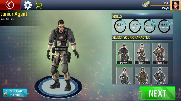 在这款射击游戏里,相信每个人都能成为出色的特工。这次的任务背景设定在一个港口,特工队成员的目标就是消灭所有恐怖分子。你配备了现代化的武器装备,而敌人也拥有同样先进的武器,所以在躲避攻击的同时,必须精准击中对方,才有机会赢得胜利。