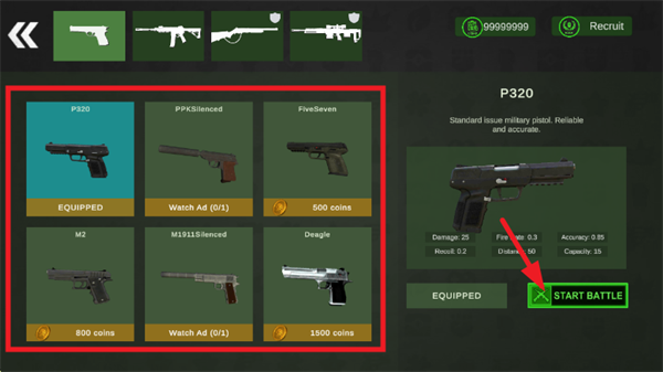 2、选择好武器,点击下方的“START BATTLE”按钮;