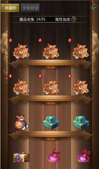 少女日记,收集十个藏品之后可以解锁一个少女日记,同样可以获得属性加成;