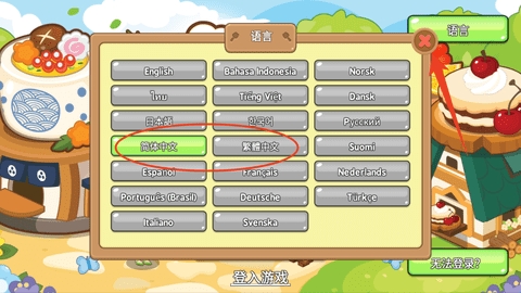 1、进入游戏后,要是发现界面语言不是中文,可点击右上角的“language”按钮进行调整。
