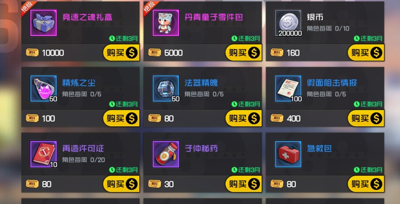 商城里限购的推荐道具包括角色栏位券、精炼之城、法器精魄和银币。至于抽补给就不用多说了,抽卡一时爽,一直抽卡一直爽嘛。斗气光环加到十六,要是没抽到可能会有点郁闷,但其实抽到精炼法器的材料也不亏,性价比还不错。交易行的道具得用金币买,刚开服的时候可以适量收一些低价画像,后期价格会涨得比较贵。凝炁原石初期价格很高,建议留够自己用的,剩下的早点卖掉,平时多逛逛交易行说不定能捡到漏呢!