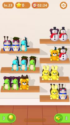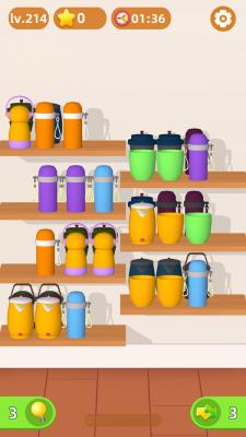 2这个游戏的操作逻辑十分直观,参与者仅需把属性一致的物品归置到同一置物架上,就能达成消除效果。