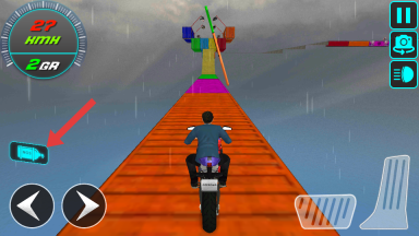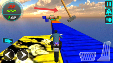 1、操控摩托在彩色赛道行驶,需要注意躲避阻挡赛道的摆动锤子等动态障碍,需要看准时机冲刺过去。
