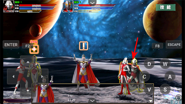 4、使用W键等虚拟按键,操控奥特曼执行跳跃等动作,战斗通过跳跃躲避敌人攻击发起空中进攻,增强战斗攻击性。