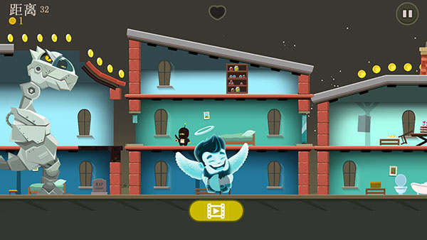 2、要是被障碍困住太久,让后面的机甲恐龙追了上来,游戏就会失败。