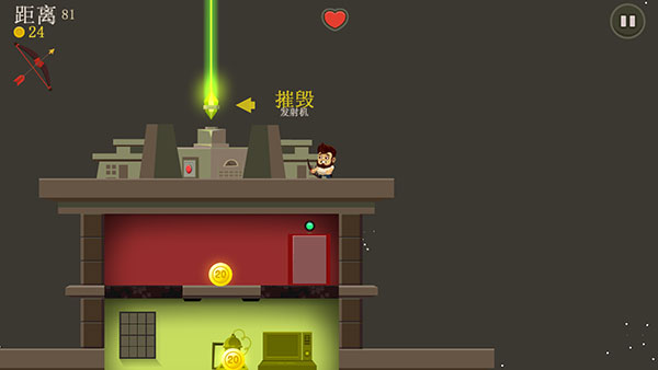 7、只要摧毁发射机就能通关,不过在此之前,要是角色的生命值降到零,同样会造成游戏失败。