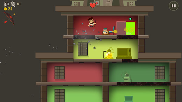 3、第二阶段离开车辆后,除了通过上下跳动来操作,还能借助左右滑动来调整角色的移动方向。