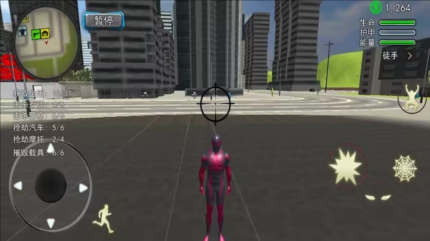 1、操控蜘蛛侠这位英雄,借助蜘蛛丝在城市里穿梭移动,施展战斗技能与敌人展开对决。