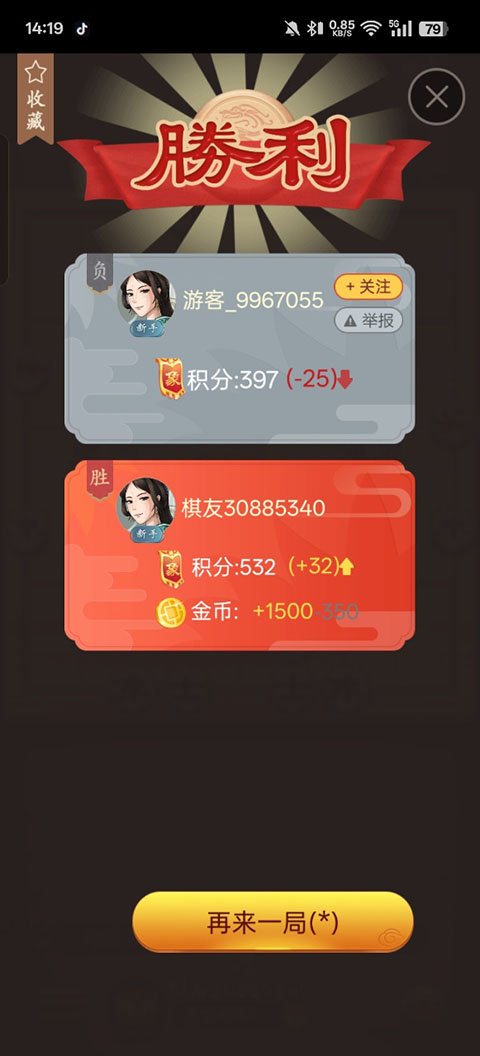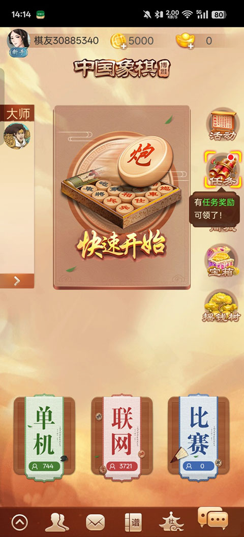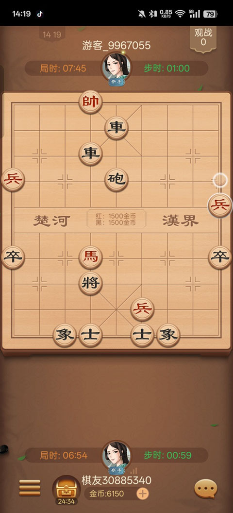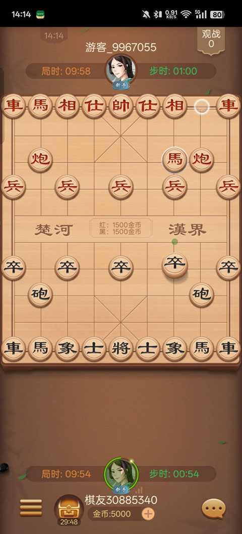 2、接着进行匹配,确定好金币的赌注后就能开始下棋了。