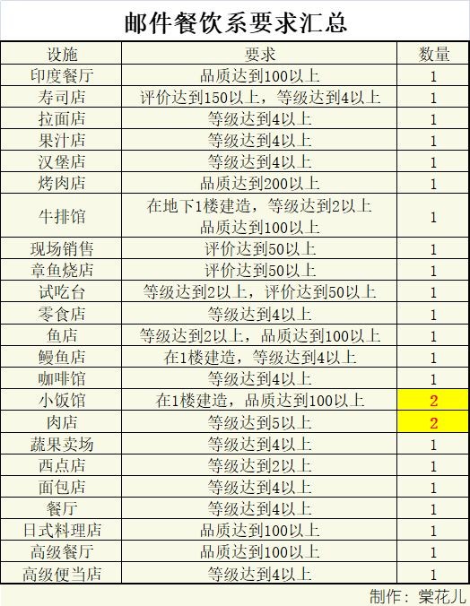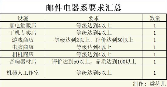 初期拥有的所有建筑物,后续都会有顾客需求,之后需要逐个用点数提升等级。升级后商品价格和评价会有少量提升,目前暂时先升到2级就行——因为2级是后续邮件系统中大部分顾客成为常客的必要条件,而顾客成为常客后,会赠送店铺或带来新顾客。升级时的点数分配,餐饮类优先加库存;引进服务也优先选餐饮相关的,毕竟餐饮有店员加成,品质更好卖。其他系列可根据个人需求选择,但大部分情况下还是优先加库存,只有极少数有任务要求的(比如服务台)才需要加品质。