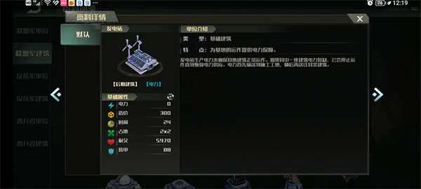 本文专门统计所有建筑的详细数据,联盟军和晋升者的建筑数据基本一致,所以放在一块说反抗军因为建筑数据有些差别,单独列表