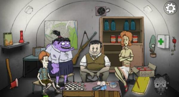 通过收音机和军方建立联系——系统会从地图、手电、扑克牌里随机选一样,用它来告知避难所的具体位置——接着在斧子和枪中随机选一件道具,要么用斧子砍树,要么用枪缴械(所选道具会被消耗)——然后指派一个人和军队碰面接头——最后军队就会上门敲门实施营救