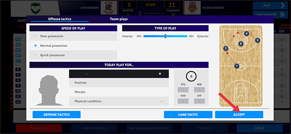 8、当分数落后时,游戏会弹出比赛策略,玩家可以自行选择防守还是进攻等战术