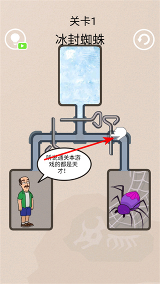 3、完成解谜步骤:通过合理操控机关,引导冰块或水流抵达蜘蛛所处区域,将蜘蛛冻结,即可完成解谜。