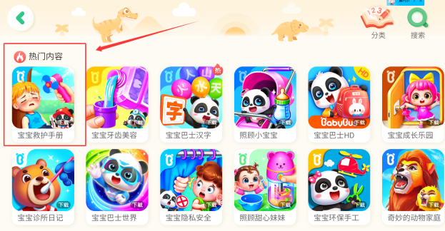 3、进入推荐内,可以看到宝宝适用年龄,点击进入,选择宝宝年纪即可。