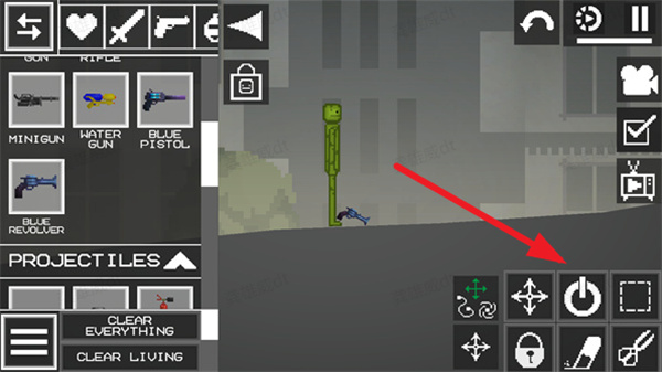 1、第一步先打开武器列表,挑选一件武器,把它放置在甜瓜人脚边。