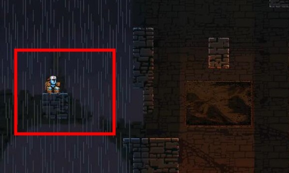 这一关卡的场景设定在雨中的橙色地牢,本关在跳跃机制方面没有新增内容,不过需要注意的是,在部分跳跃过程中,玩家可能会从下雨的场景里直接跌落回起始点,各位玩家一定要多加小心。