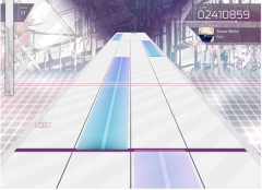 游戏有上、下两条判定线。扁平短音符需要在与下方的判定线重合时点击,立体短音符需要在与上方判定线重合时点击。