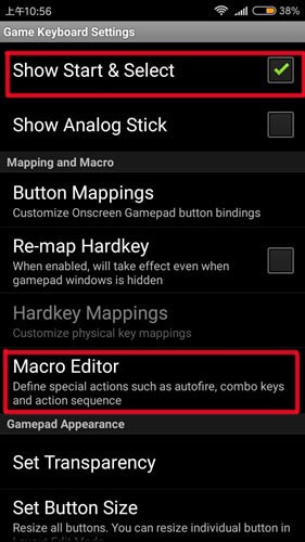 3、点击Show Start&Select,勾选上。再点击下面的Macro Editro。