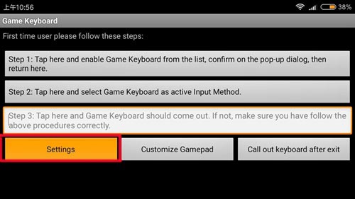 6、按下手机的返回键,回到Game Keyboard的主页面,然后点击右下角的Customize Gamepad选项。