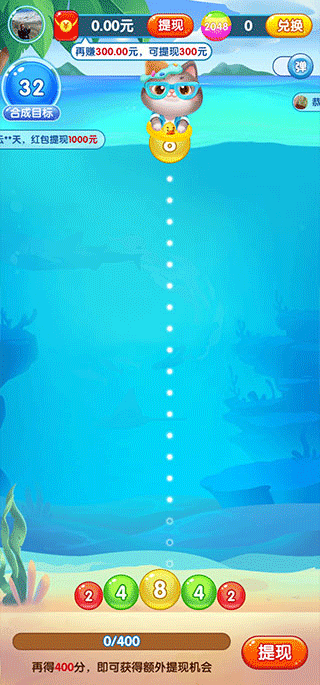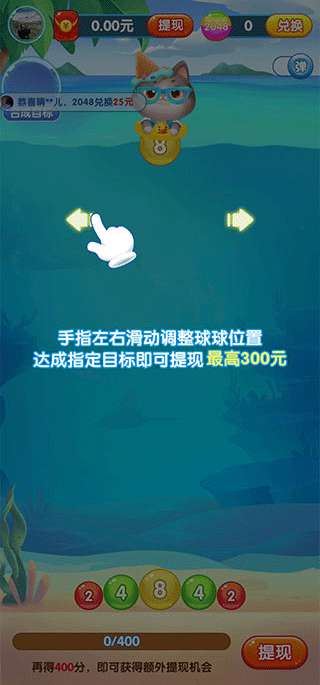 2进入游戏后,通过手指在屏幕上的左右滑动来控制小球的下落方位,完成系统设定的任务要求就能申请提现。