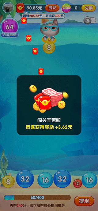 精彩2048游戏红包版是一款休闲有趣的消除益智闯关游戏,它运用Q版卡通的画面风格,把合成与消除两种玩法结合起来,玩家在游戏里要把随机出现的两个带数字的球合成数字更大的球,一直到最终合成2048。