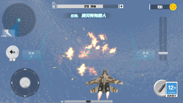 1、游戏的操控十分灵活,玩家能够自由掌控战斗机的飞行方向与速度,完成各类高难度的飞行动作;