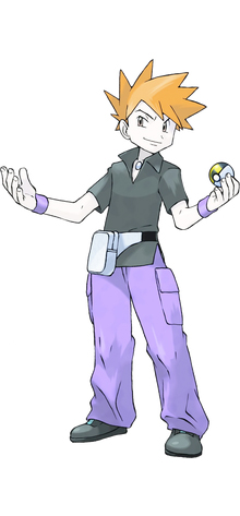他是主角在《精灵宝可梦 火红·叶绿》中的劲敌。旅途中,他会反复与主角相遇并发起对战,以此检验自身实力。而他所选的初始神奇宝贝,其属性恰好克制主角的初始神奇宝贝。