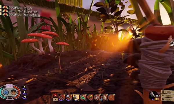 在游戏里,玩家既能够从周围环境中拾取基础材料,也可以通过制作工具来采集高级植物材料,还能利用武器击杀昆虫获取昆虫材料。