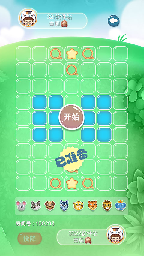 进入房间后,双方玩家都需要点击中间的【开始】按钮以完成准备。