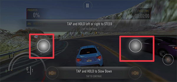 比如按键操作模式,可借助按住屏幕左右两边来控制车辆的行驶